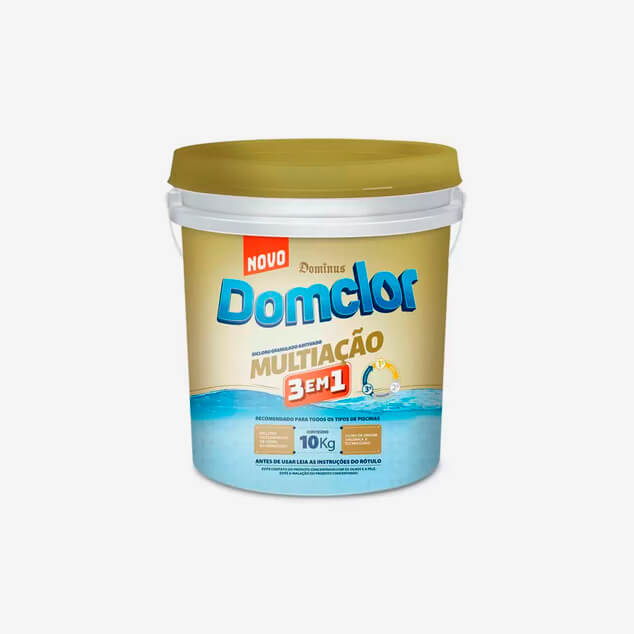 DomClor Multiação 3 em 1 é um cloro destinado a desinfecção de piscinas. DomClor Multiação 3 em 1 é recomendado para todos os tipos de piscinas.