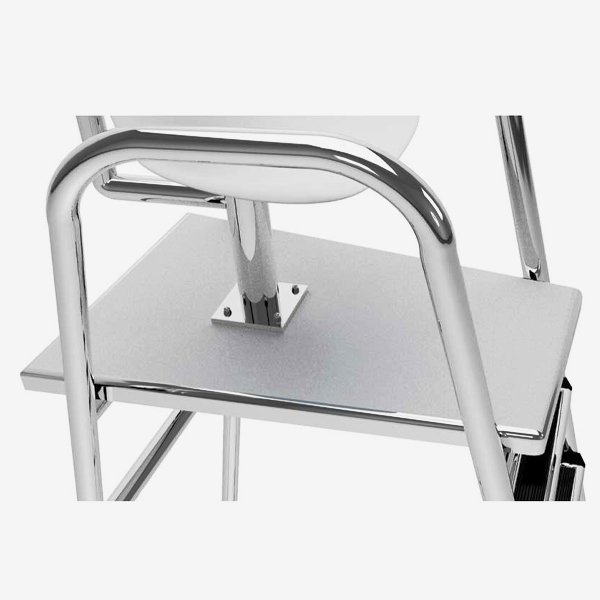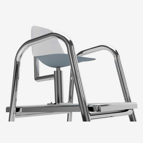 A Cadeira Salva-Vidas da ALBACETE foi projetada para atender plenamente a NBR11238, proporcionando ao guardador segurança, conforto e ampla-visão na sua atuação. Fabricada em aço inox 304 com cadeira confeccionada em fibra de vidro que pode girar até um ângulo de 60graus. Possui degraus e prancha antiderrapantes, além de suporte traseiro para guarda-sol.